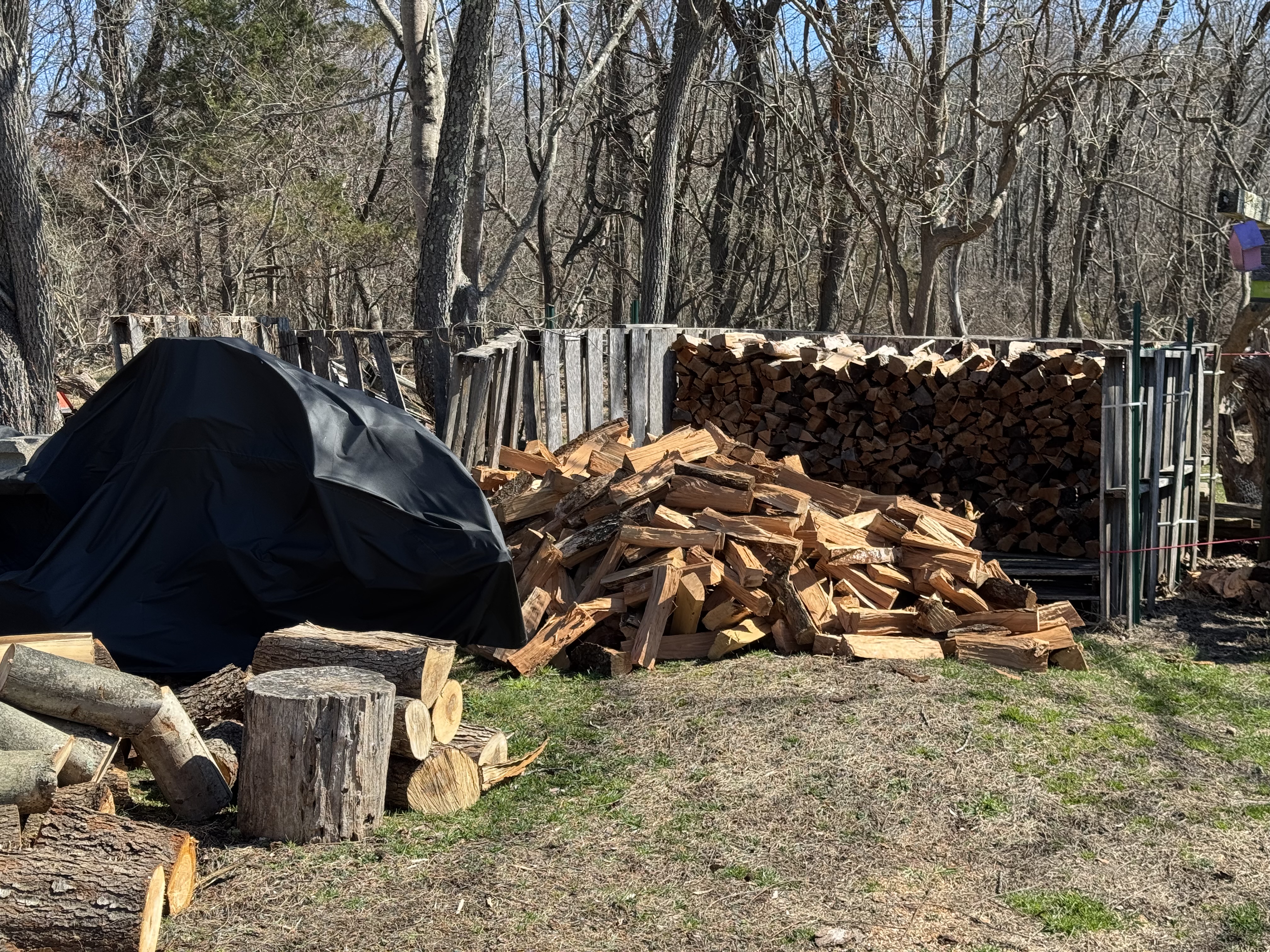 I've been busy working outside for the past three days. A friend and I started by cutting up the remaining log stack and splitting about half of it for firewood. Then Thursday and Friday we cleared the cart path through the woods, part of our property, that had been blocked by fallen trees and broken branches.
